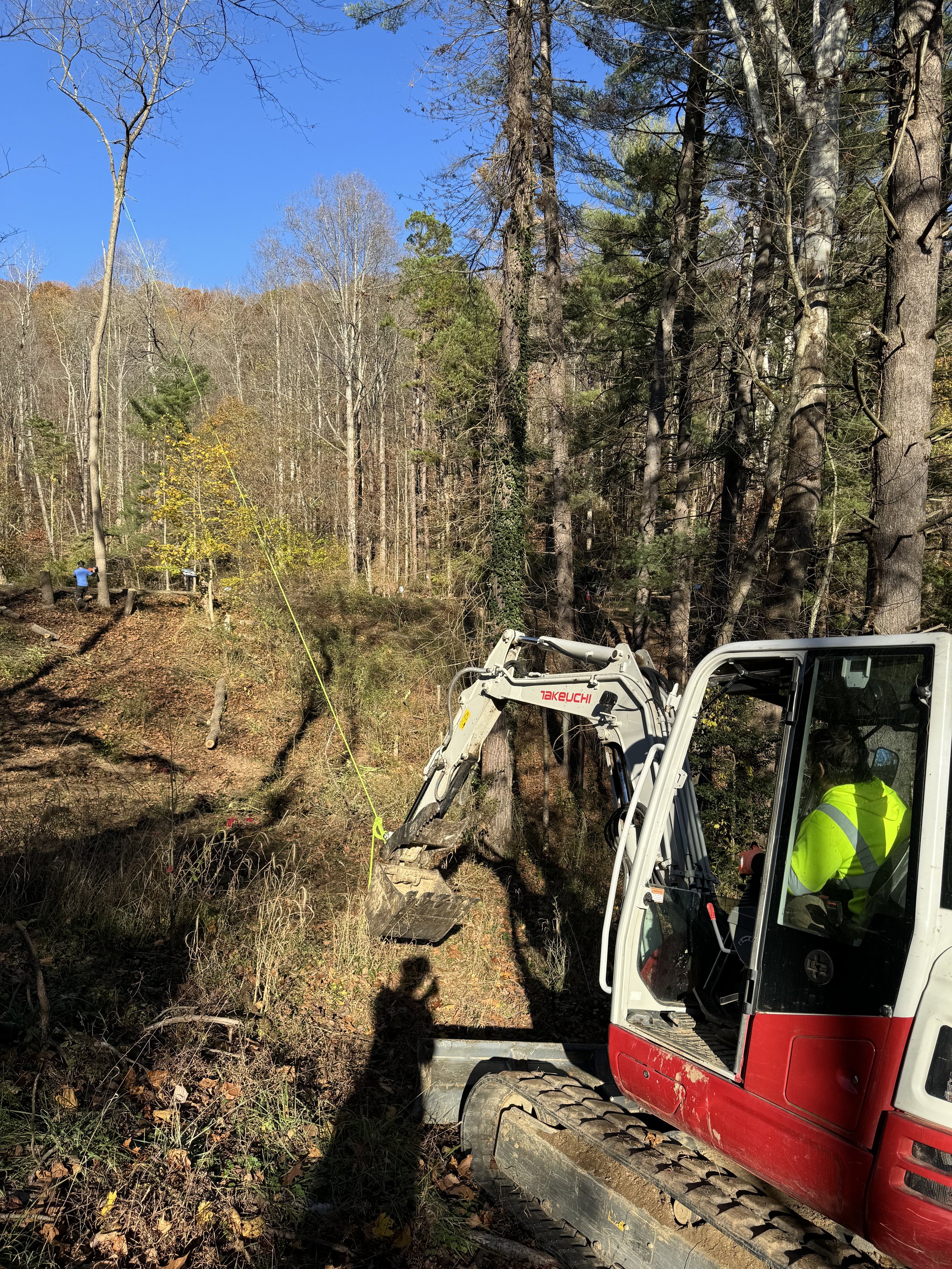 Teamed up with Covington Excavation LTD to tackle a land clearing project for the Athens Arts, Parks, and Recreation Department in November. A series of trees needed to be removed at Sells Park in Athens, OH because their root systems were compromising the structural integrity of the dam. With the help of these big machines we were able to remove the trees, including the root balls, and completely regrade the dam!